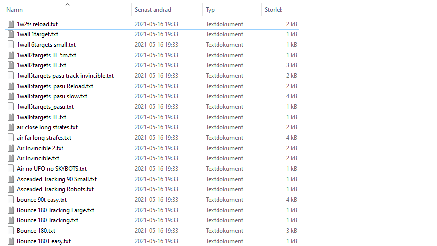 Namn, datum och tid finns i filens titel, medans skott, träffar och poäng finns inuti filen.